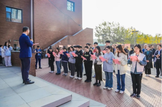 校友平行论坛开场全体校友共同佩戴院徽