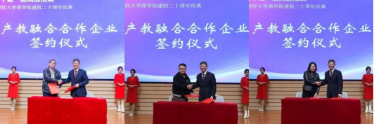 与天津电视台都市频道、世界绿色设计组织、北京光华设计发展基金会代表分别签订校企合作协议