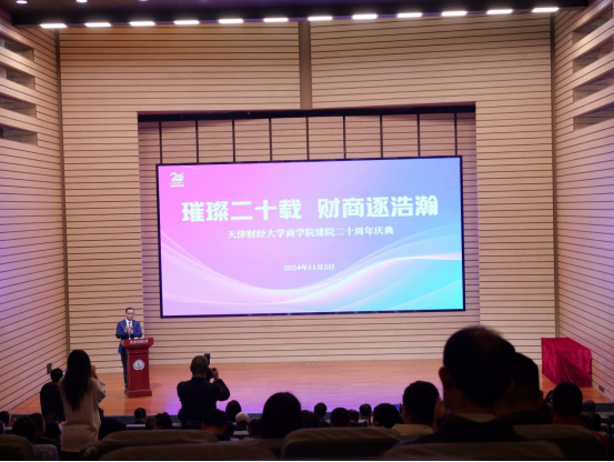 成功举办“璀璨二十载,财商逐浩瀚”建院20周年庆典暨数智时代新商科发展论坛。天津市社科联专职副主席袁世军、校党委书记赵鸣、副校长韩少波,以及兄弟院校代表、合作单位代表、校友和在校师生代表等200余人参加此次活动。活动分为麻豆网