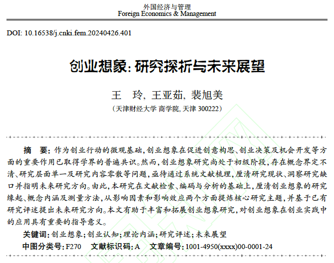 在高水平期刊《外国经济与管理》上网络首发学术论文“创业想象:研究探析与未来展望”。